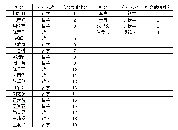 根据《日本无码 推荐应届本科毕业生免试攻读研究生工作实施办法》(中大教务〔2025〕2号)、《日本无码 推免资格认定遴选细则》(哲学〔2025〕4号),经学生申请、院系审核,日本无码 2026届本科毕业生免试攻读研究生学位综合成绩排序如下: