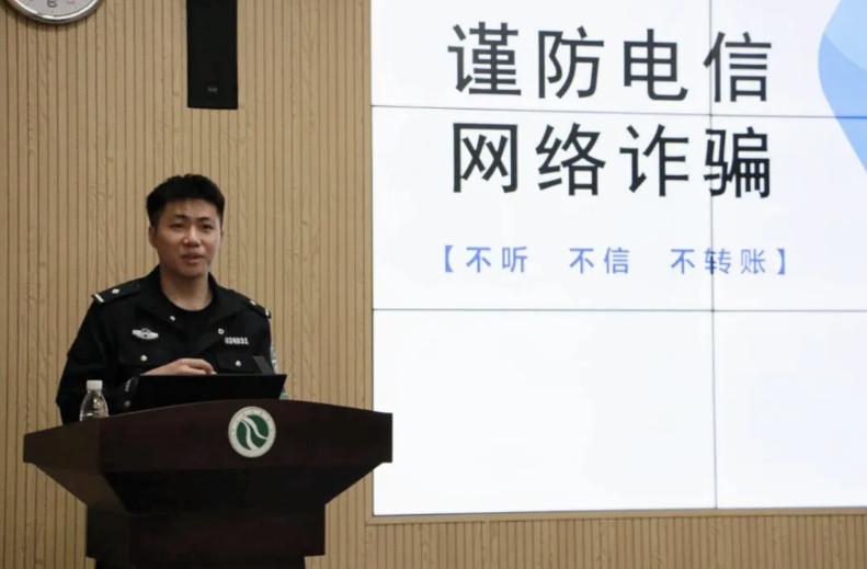 课程伊始,曾伟东警官以“谨防电信诈骗”为主题进行安全专题教育。曾警官深入剖析电信网络诈骗的性质与特点,用一个个发生在身边的案例,将诈骗的隐蔽性与危害性直观地展现在同学们面前,提醒同学们警惕诈骗分子利用他人同情心进行诈骗。在常见诈骗手段讲解环节,他着重指出“屏幕共享”这一高危陷阱,告诫同学们不要进入未知会议,对涉及个人信息的链接和验证码保持高度戒备。随后,曾警官结合大量真实且具代表性的学生受骗案例,对虚假购物、兼职刷单、冒充客服、冒充熟人、网络交友等多种诈骗类型进行分类讲解,剖析每种诈骗的作案手法、特点及防范要点,并再次提醒同学们一定要关注“广州反诈”公众号,注册“穗安防诈”,如不幸遭遇诈骗,第一时间拨打保卫处或者派出所电话,及时止损,切不可抱有侥幸心理。